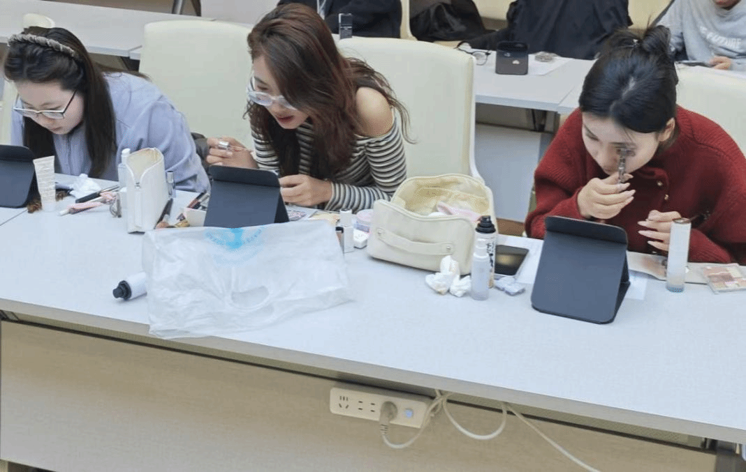 讲解完毕后,进入实操环节,同学们拿出自己提前准备的化妆工具,在化妆师的带领下进行实操,从底妆、眼妆、鼻妆到唇妆,一步步进行学习实践。活动结束后,同学们纷纷表示受益匪浅,不仅学习了基本的化妆技巧,也在与同学们相互交流的过程中学到了很多经验,活动得以圆满落幕。