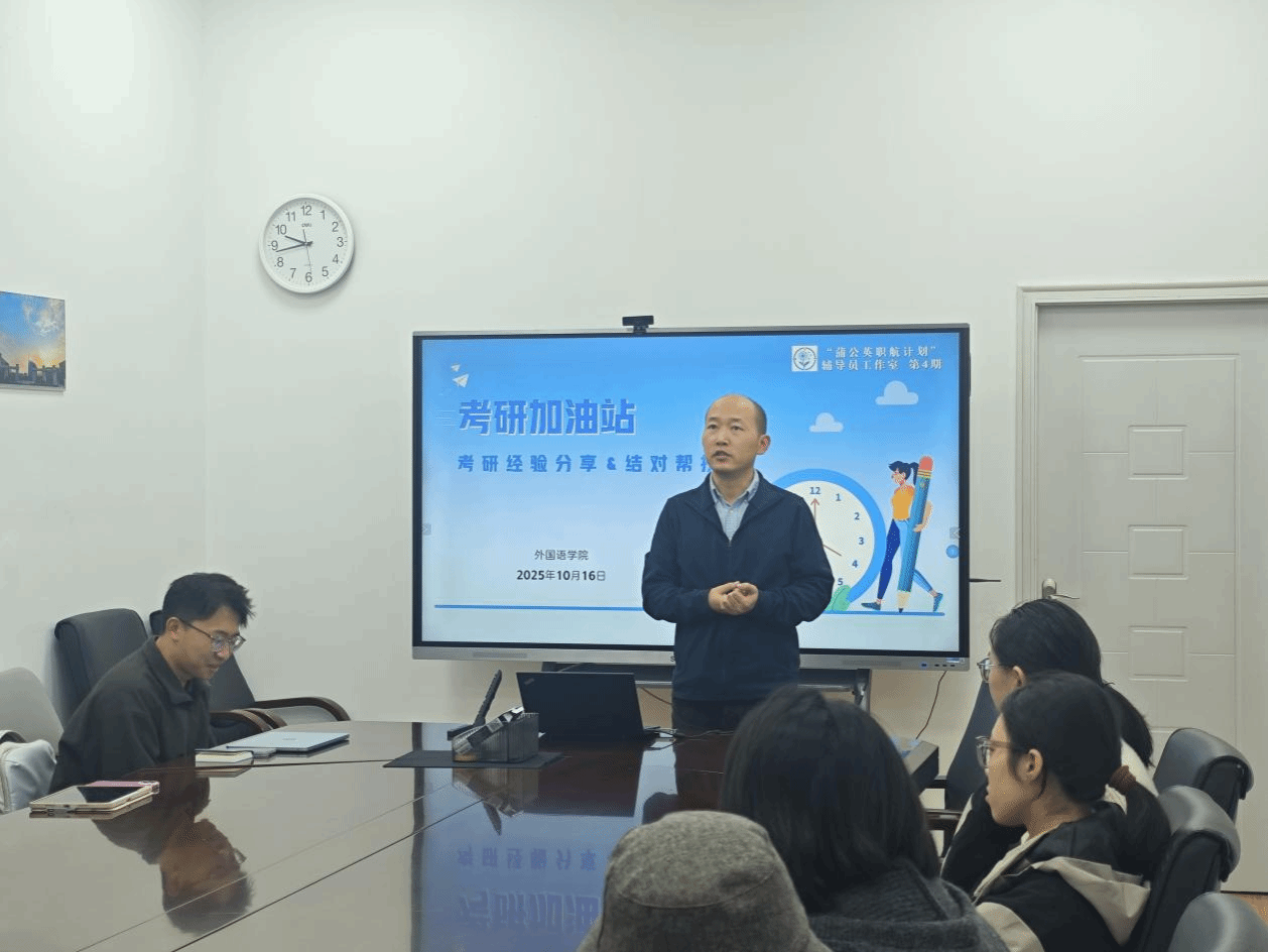 10月16日,在“蒲公英职航计划”辅导员工作室的指导下,直播做爱“语翼知行中心”在219会议室开展“考研加油站”主题活动。辅导员赵青邀请四位研究生新生分享升学备考经验,并启动结对帮扶机制,为有升学意向的大四本科生答疑解惑、精准护航。
