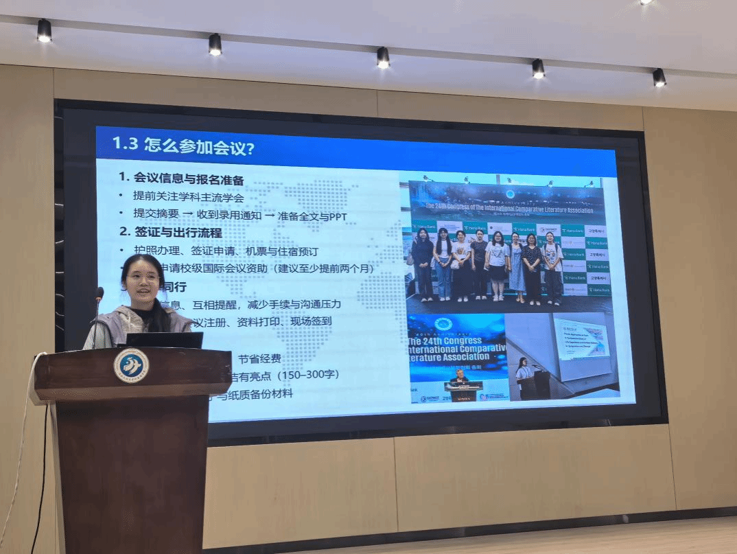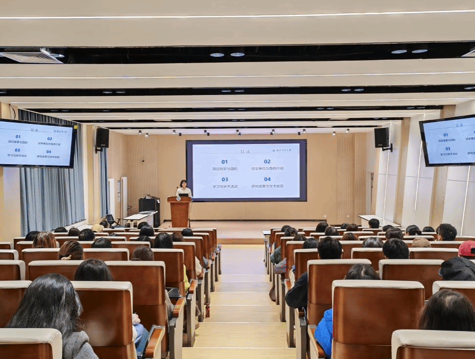 活动伊始,袁冰洁、李塞楠两位同学率先分享了她们在约旦拜勒加应用大学的短期访学经历。袁冰洁从项目概况、主要目标、数据收集过程及文化体验等方面进行了详尽讲解。李塞楠则从前期准备、科研计划、访学过程与心得建议等方面进行了系统分享,清晰地介绍了访学项目的申请流程与学术安排。