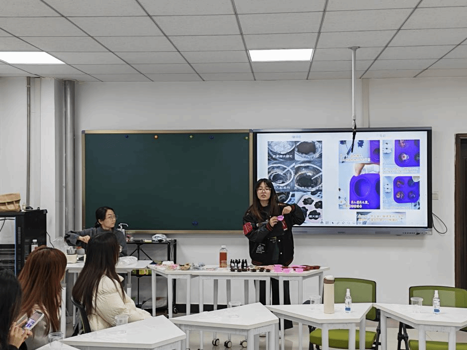 等待皂体凝固期间,活动穿插了“肥皂冷知识”趣味问答,内容涵盖肥皂发展史、“胰子”由来、不锈钢皂去味原理等。随后进入分享环节,大家围绕“香气背后的故事”“手作中最宁静的片刻”展开交流,不少同学谈及所选香味与个人情感的联结,或在搅拌、注模时体验到的全然专注,手作成为情感表达与内心对话的载体。